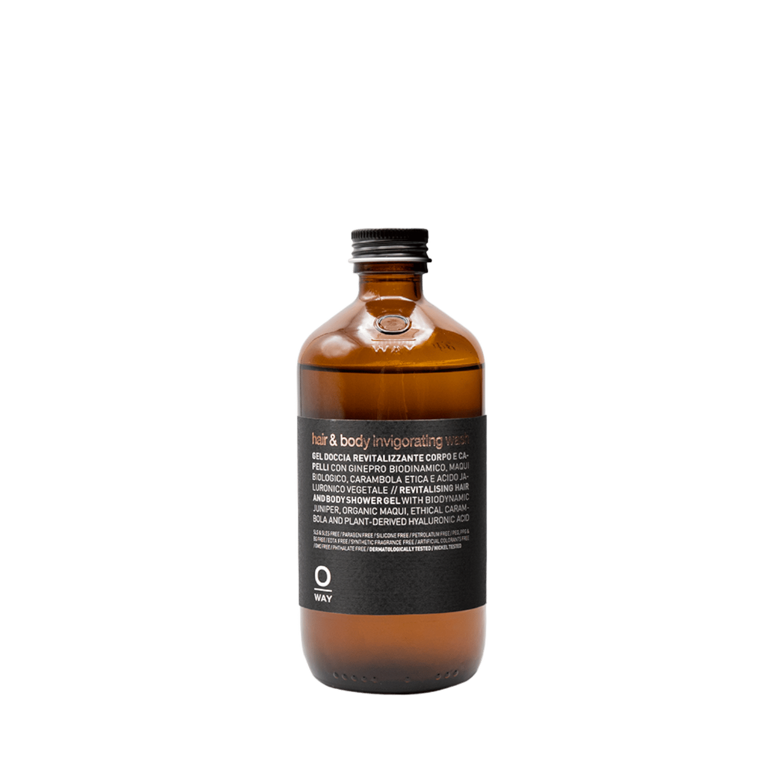 Atgaivinantis plaukų ir kūno prausiklis su augalų išgauta hialurono rūgštimi, biodinaminiu kadagiu, ekologiškomis Maqui uogomis ir etiškai gauta karambola